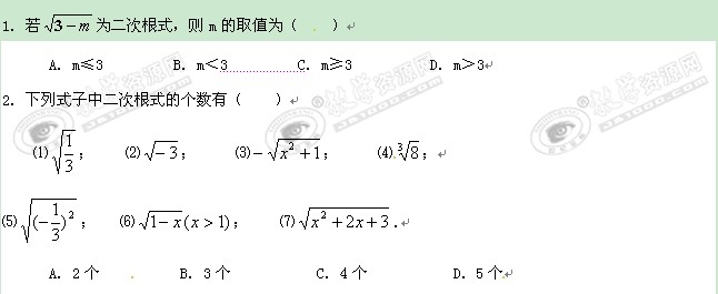 数学:河南省大峪二中《二次根式》单元测试(二) (人教版九年级)