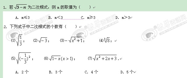 数学:河南省大峪二中《二次根式》单元测试(三) (人教版九年级)