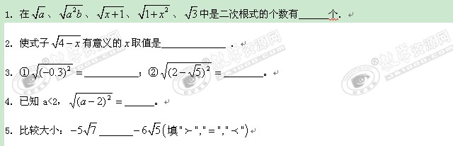 数学:河南省大峪二中《二次根式》单元测试(五)(人教版九年级)