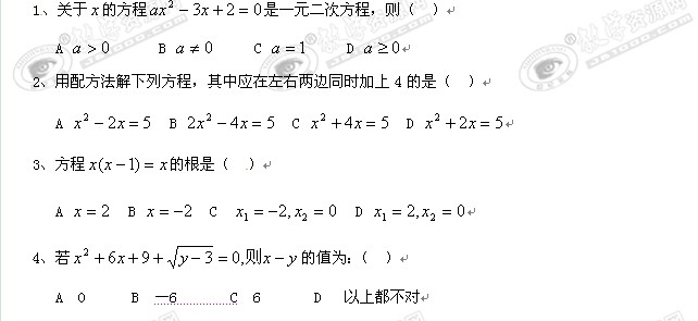 数学:河南省大峪二中《一元二次方程》单元测试 (三)(人教版九年级)