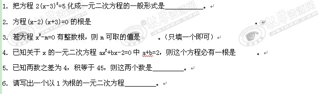 数学:河南省大峪二中《一元二次方程》单元测试 (一)(人教版九年级)