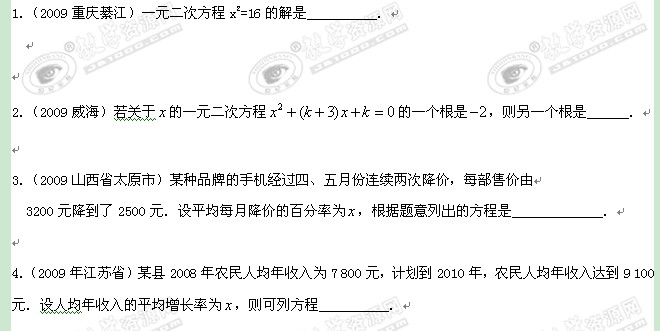 数学:河南省大峪二中《一元二次方程解法及应用》单元测试(人教版九年级)
