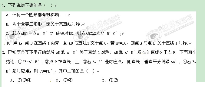 数学:广西桂林市宝贤中学12.2《轴对称图形》同步练习(七年级)