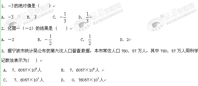 江苏省大丰市第三中学11-12学年七年级上学期12月月考试题(数学)缺答案