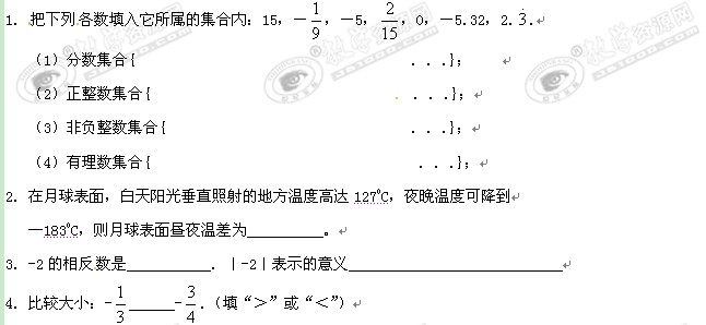 北京市延庆县第四中学11-12学年七年级上学期第三次周测试题(数学)缺答案
