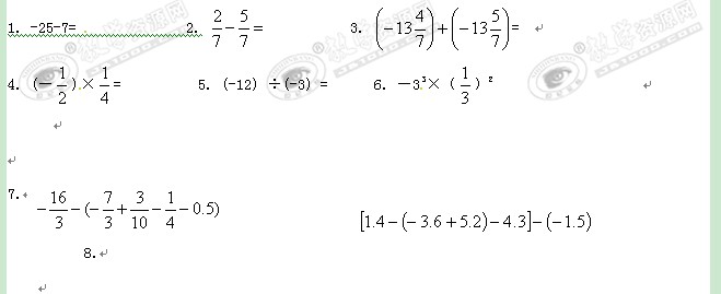北京市延庆县第四中学11-12学年七年级上学期第十次周测试题(数学)缺答案