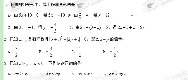 数学:2011年期末考试精品复习资料二(七年级上)
