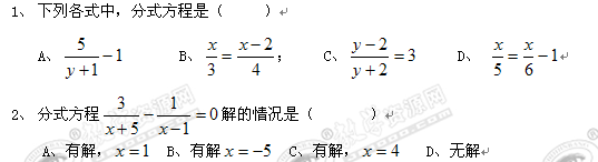 数学:8.5《分式方程》同步练习(苏科版八年级下)