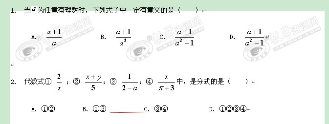 数学:《分式》同步练习7(人教版八年级下)