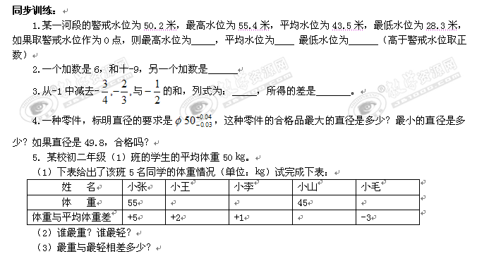 数学:2.8《有理数的加减混合运算》同步练习1(华东师大版七年级上)