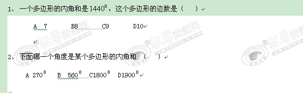 数学:《多边形及其内角和》同步练习1(人教版七年级下)