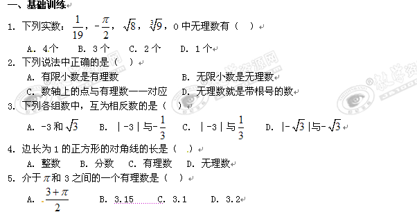 数学:12.2《实数与数轴》同步练习2(华东师大版八年级上)