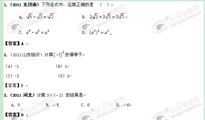 2011年中考数学试题分类汇编:实数的运算专题