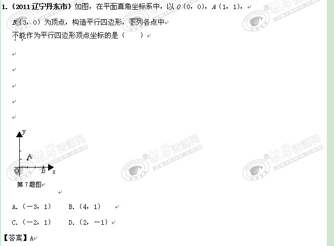 2011年中考数学试题分类汇编:数量和位置变化 平面直角坐标系专题