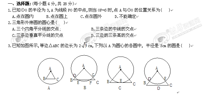 数学:28.2《与圆有关的位置关系》同步练习1(华东师大版九年级下)