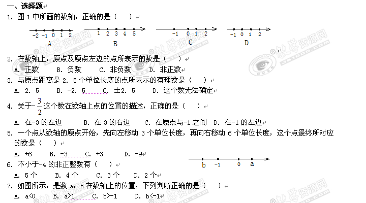 数学:《数轴》同步练习(华东师大版七年级上)
