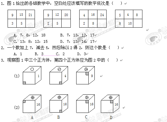 数学:第1章《走进数学世界》同步测试(华东师大版七年级上)