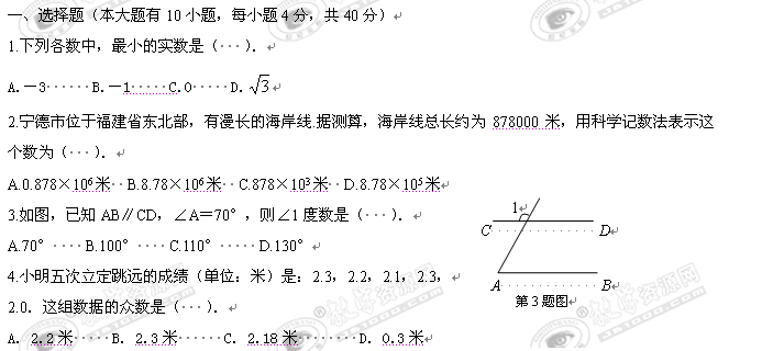 2008年福建省宁德市初中毕业、升学考试试题(数学)