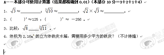 数学:第12章《数的开方》同步测试2(华东师大版八年级上)(无答案)