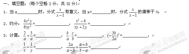 数学:第17章《分式》同步测试(华东师大版八年级下)(无答案)