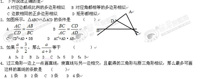 数学:第24章《图形的相似》同步测试(华东师大版九年级上)