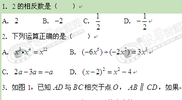 2008年湖北省襄樊市初中毕业、升学统一考试试题(数学)