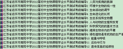 【打包下载】江苏省启东市南阳中学2012届初中生物课程学业水平测试考前辅导(12套)