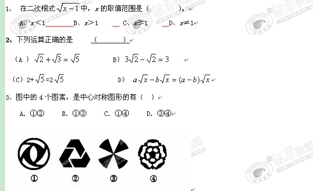 山东省邹平县实验中学11-12学年九年级上学期期末考试试题(数学)缺答案