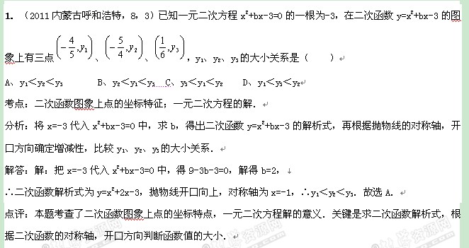 2011全国中考真题解析120考点汇编:二次函数与x轴的交点情况及与一元二次方程根与系数