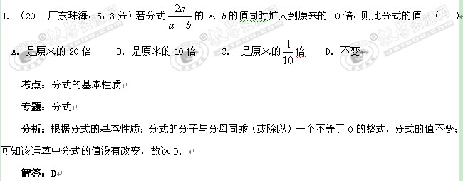 2011全国中考真题解析120考点汇编:分式的基本性质,负指数幂的运算