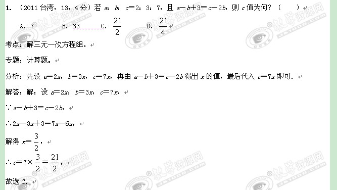 2011全国中考真题解析120考点汇编:解二元一次方程组以及简单的三元一次方程组