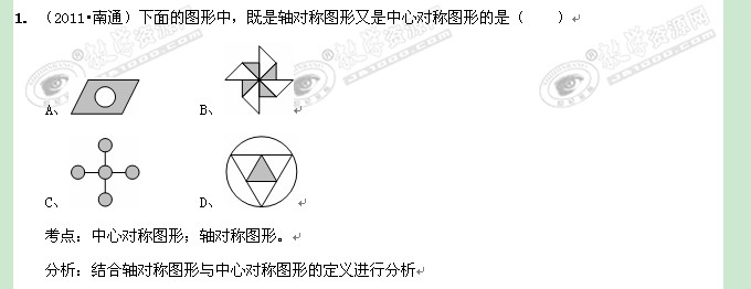2011全国中考真题解析120考点汇编:旋转,旋转对称,中心对称,中心对称图形