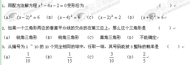 贵阳市11—12学年九年级上学期期末监测试卷(数学)
