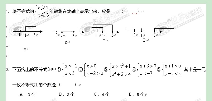 数学:第九章《不等式与不等式组》单元检测(5)(人教版七年级下)
