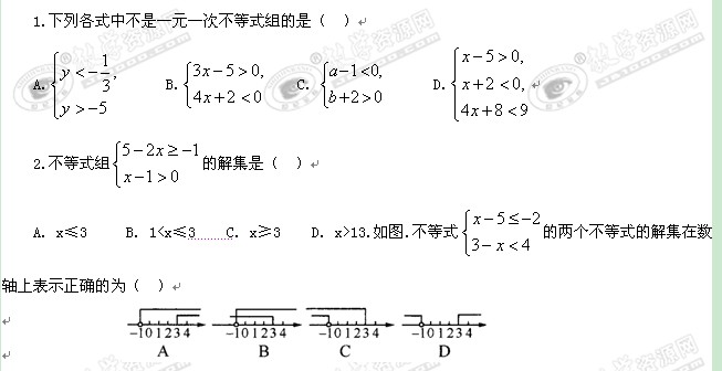 数学:第九章《不等式与不等式组》单元检测(6)(人教版七年级下)