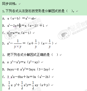 数学:9.1《因式分解》同步练习(北京课改版七年级下)