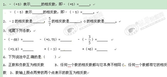 数学: 1.2.3《相反数》作业(人教版七年级上)