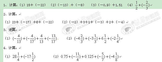数学: 1.3.1《有理数的加法》作业(人教版七年级上)