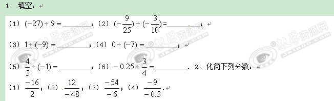 数学: 1.4.2《有理数的除法》作业(人教版七年级上)