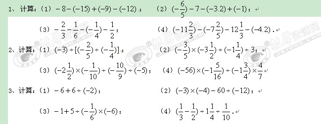 数学: 1.4.3《有理数加减乘除混合运算》作业(人教版七年级上)