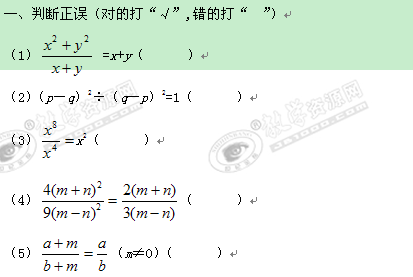 数学:11.3《分式的乘除法》同步练习(北京课改版八年级上)