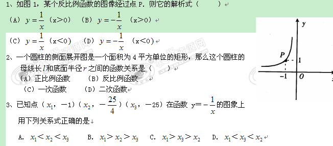 数学:20.6《反比例函数》同步练习(北京教改版九年级上)(无答案)