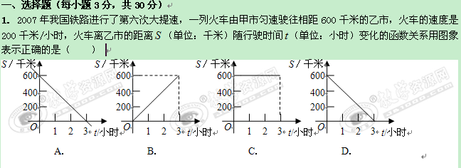 数学:第十五章《一次函数》同步测试2(北京课改版八年级下)