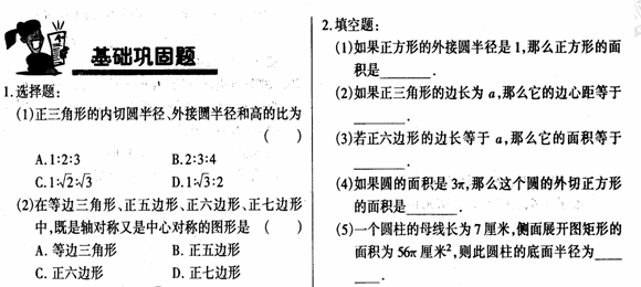 数学:24.4《正多边形的有关计算》(北京课改版)(扫描版)