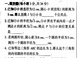 数学:24章《圆》(下)综合检测题(北京课改版)(扫描版)