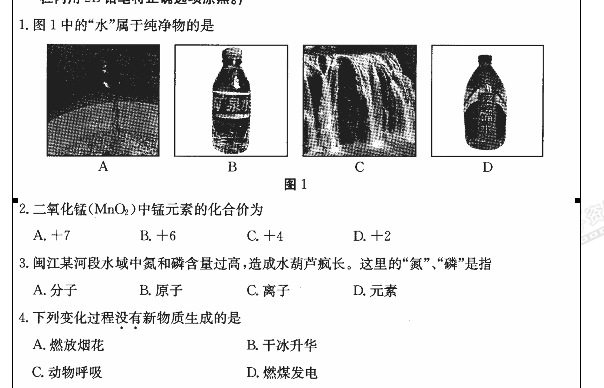 2007年福建省福州市初中毕业会考、高级中等学校招生考试(化学)扫描版