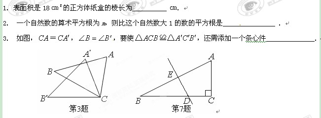 江苏省南通市紫石中学11-12学年八年级上学期期末考试试题(数学)缺答案