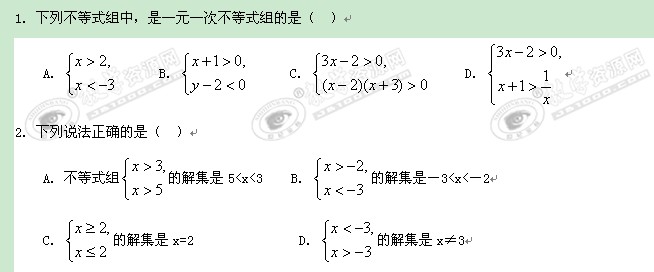 数学:1.6 《一元一次不等式组》同步练习(北师大版八年级下)