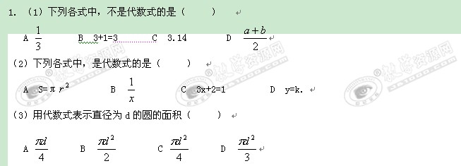数学:1.1-1.2《整式及整式加减》课堂小卷(北师大版七年级下)