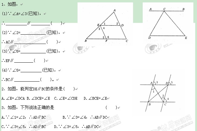 数学:第二章《平行线与相交线》单元测试(北师大版七年级下)